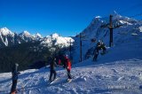 Olimme perillä ensimmäisten joukossa ja purkaannuimme nopeasti autosta hisseille. Tuolihissiin istuttaessa iski kuitenkin yllätys, sillä neljän hengen hississä ei ollut turvakaarta alkuunkaan. 😯 Emme ole törmänneet vastaavaan koskaan aiemmin, sillä pienimmissäkin keskuksissa on jokaisessa tuolihississä edes pieni kääntyvä kaide, mutta Mount Bakerilla ei niin mitään. Sama toistui järjestelmällisesti kuudessa Bakerin kaikkiaan kahdeksasta tuolihissistä ja täytyy sanoa, että se nostatti hiukset pystyyn! Vaikka itse tykkäänkin korkeilta paikoilta avautuvista maisemista, kärsin silti helposti lievästä korkeanpaikankammosta ja istuminen tuolihississä paikoin kymmenien metrien korkeudessa oli erittäin epämukavaa puuhaa.
