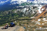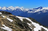 Maisemat polun varrelta olivat henkeäsalpaavat ja varsinkin ympyräreitin puolivälissä alapuolella näkyvä Cheakamus Lake on turkoosin värisenä tavattoman kaunis näky. Meillä oli hieman onnea jo pitkään suunnitellun vaelluksemme kanssa, sillä viime talven runsaan lumentulon vuoksi vaelluspolku oli avautunut vasta viikkoa aiemmin – siis aivan heinäkuun viimeisinä päivinä! Lunta oli reitillä edelleenkin runsain mitoin, mikä teki etenemisestä ajoittain varovaista liukastelua.
