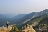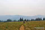Seuraavana päivänä ohjelmassamme oli suunnata varsinaiselle Manning Provincial Parkin alueelle ja vaeltaa kahden kilometrin korkeudella kulkeva hieno polku. Paksun savun keskellä ei ympäröiviä maisemia kuitenkaan juuri nähnyt, mutta teimme kuumasta kelistä huolimatta 15 kilometrin mittaisen vaelluksen Three Brothers Mountainin lähistölle, jolta aukeni jonkinlainen maisema syvään laaksoon. Seuraaville huipuille olisi ollut vielä muutama kilometriä lisää, mihin emme enää kyenneet paarmojen piiritettyä meitä jo jonkin aikaa ja metsäpalosavun pilatessa maisemat joka tapauksessa.