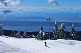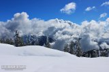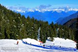 Jaksoimme laskea Cypressillä aina puoleen päivään saakka, jonka jälkeen totesimme kauden 15. laskettelupäivämme olevan siinä ja pakkasimme kamat autoon. Paluumatkalla ajoimme huviksemme naapurivuori Mount Seymourille, joka on saanut tänä vuonna huikeat 13,5 metriä lunta. Lumi on pakkautunut painonsa alla ala-asemalla keskimäärin noin 3,5 metrin paksuiseksi vaipaksi, joka kietoi sisäänsä hiihtokeskuksen rakennuksia ja ympäröi uhkaavasti osaa parkkipaikan reunapaikoista. Yläasemalla lumen syvyydeksi mitataan peräti 6,5 metriä, mikä olisi kiehtova nähdä omin silmin, joskin Mount Strachanilla lukemat lienevät samaa luokkaa.