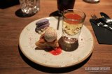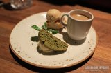 Jälkiruoaksi oli tarjolla kaksi vaihtoehtoa, joista ensimmäinen Earl Grey -jäätelöä Matcha-teen makuisen keksin kanssa. Oma valintani ruusunlehtijäätelöstä belgialaisella vohvelilla sekä laventelimakaroonilla upposi nopeasti herkkunälkäisen syömärin suihin.