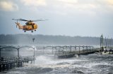 Tuulen nimittäin onnistui irroittaa rantaveteen ankkuroituja veneitä, jotka paiskautuivat päin kaupungin kuuluisaa laituria. Paikalle myrskyn nostattamia korkeita aaltoja katsomaan tulleet ihmiset pystyivät vain katsomaan miten meri hakkasi veneitä laituria vasten kunnes laituri antoi lopulta periksi, jättäen jälkeensä 30 metriä pitkän aukon laituriin.