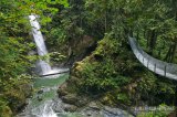 Parkkipaikalta on lyhyt, joskin sangen jyrkkä kipuaminen riippusillalle, jolta avautuu hieno näkymä voimakkaasti jymisevälle putoukselle. Putouksella on korkeutta 30 metriä, minkä jälkeen vesimassat jatkavat matkaansa alas vuolasta koskea, päätyen osaksi Hatzic Valleyn pohjalla virtaavaa ja lopulta Fraser Riveriin päätyvää jokea. Upea vesiputous teki kaikkiin vaikutuksen ja erityisesti Fionalle maistui uni jännittävän päivämatkan jälkeen.