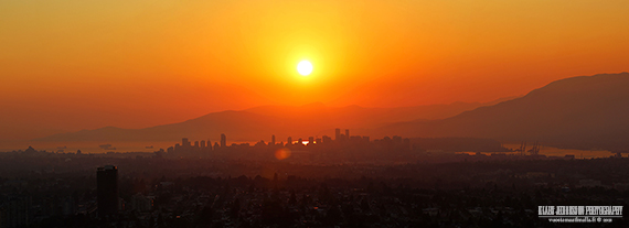 Vancouverin ilma onkin ollut viime päivinä erittäin utuinen, mikä ei kuitenkaan johdu (vielä) metsäpalosavusta, vaan paikalleen jämähtäneistä ilmansaasteista. Vaikka auringonlaskut ovatkin olleet todella upeita, on ilma epäpuhdasta hengittää, minkä vuoksi ostimmekin kaksi paraikaa kovaa työtä tekevää ilmanpuhdistinta. Niille saattaa olla tänä kesänä runsaasti käyttöä…