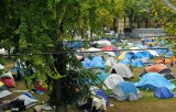 Omaisuusvarkaudet ovatkin lisääntyneet huimasti ja varastettu tavara päätyy yleensä aina samoihin paikkoihin. Minun syksyllä varastettu polkupyörä löytyi lopulta ei-yllättävästi surullisenkuuluisasta Stratchona Parkin suuresta telttakylästä. Telttakylät ovatkin ehkä näkyvin osa kaupungin epäonnistuneesta politiikasta ja niissä on jopa satoja asukkaita. Kylät vaihtavat sijaintiaan puistosta toiseen ja köyhyysaktivistit yrittävät parhaansa mukaan estää poliiseja tutkimassa niissä tapahtuvia rikoksia ja jopa murhia. Vancouverin puisto-osasto on kiemurrellut aiheen ympärillä ja yleensä telttakylä häädetään vain seuraavaan paikkaan. Ne puistot mihin tällainen kylä tulee, muodostuvat nopeasti no-go alueiksi ja omaisuusrikokset sekä väkivalta niiden ympärillä kohoavat huomattavasti.