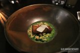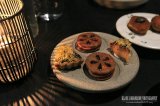 Ravintolalla on myös normaali ruokalista, mutta tähtäimessämme oli päivittäin vaihtuva kymmenen ruokalajin maistelumenu. Saavuimme ravintolaan iltaviideksi ja herkuttelu alkoi valikoimalla keittiön herkkupaloja. Pienet sormisyötävät olivat erinomainen aloitus ruokamatkallemme, joka jatkui seuraavaksi annoksella saksalaistyyppistä lihakeittoa. Sitä seurasi ravintolan erikoisuutena pidetty katkarapucoctail kurkulla sekä omenalla, joka ei ollut aivan allekirjoittaneen mieleen. Viimeisenä alkuruokana tarjoiltiin keltapyrstöpiikkimakrillia herkullisessa tyrnikastikkeessa, mikä oli kuitenkin molempien suosikki.