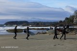 Kilometrien mittaisilla hiekkarannoilla tarjoutuu mahdollisuus katsella aallokossa huuhkivia surffaajia, joita Tofino vetää puoleensa vuodesta toiseen. Lokakuu ei ole vielä surffailuun parasta myrskykautta ja meillä olikin reissumme ajan pääasiassa aurinkoinen sää. Se ei kuitenkaan estänyt kymmeniä surffaajia hiomasta taitojaa tyrskyisessä meressä.