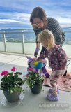 H-hetken koittaessa ja minun sekä Niinan eläessä jännittävän ikimuistoisia hetkiä sairaalla, vietti Fiona hauskoja päiviä isovanhempien kanssa leikkipuistoissa vieraillen, kukkia istutellen sekä leipoen. Tuplasynttäreiden vuoksi juhlaan olikin aihetta ja mansikkakakku teki kauppansa.