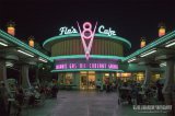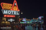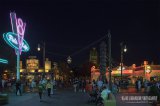 Söimme välissä hieman hiukopalaa läheisessä teemaravintolassa, minkä aikana ilta pimeni siinä määrin, että Radiator Springsin neon-valot syttyivät. Cars Land on pimeällä vieläkin maagisempi paikka, kaiken ollessa huolitellusti valaistua ja esitettyä. Alue houkutteleekin paljon ihmettelijöitä ja aamupäivän väljyys oli vaihtunut melkoiseen määrään ympäriinsä palloilevia ihmisiä.