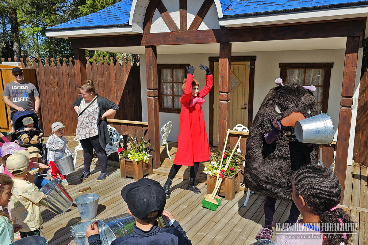 Puiston ohjelma on sangen kevyttä ja muodostuu amatööriteatterista sekä musiikkiesityksistä, mikä on nuorelle kohderyhmälle soveltuvaa. Vain kaksi kuukautta Disneylandin jälkeen koettuna Muumimaailman tarjontaa voisi ehkä pitää hieman aneemisena, mutta kyseessä on kaksi täysin erilaista (ja eri hintaluokan) kohdetta ja lapsemme rakastivat molempia.