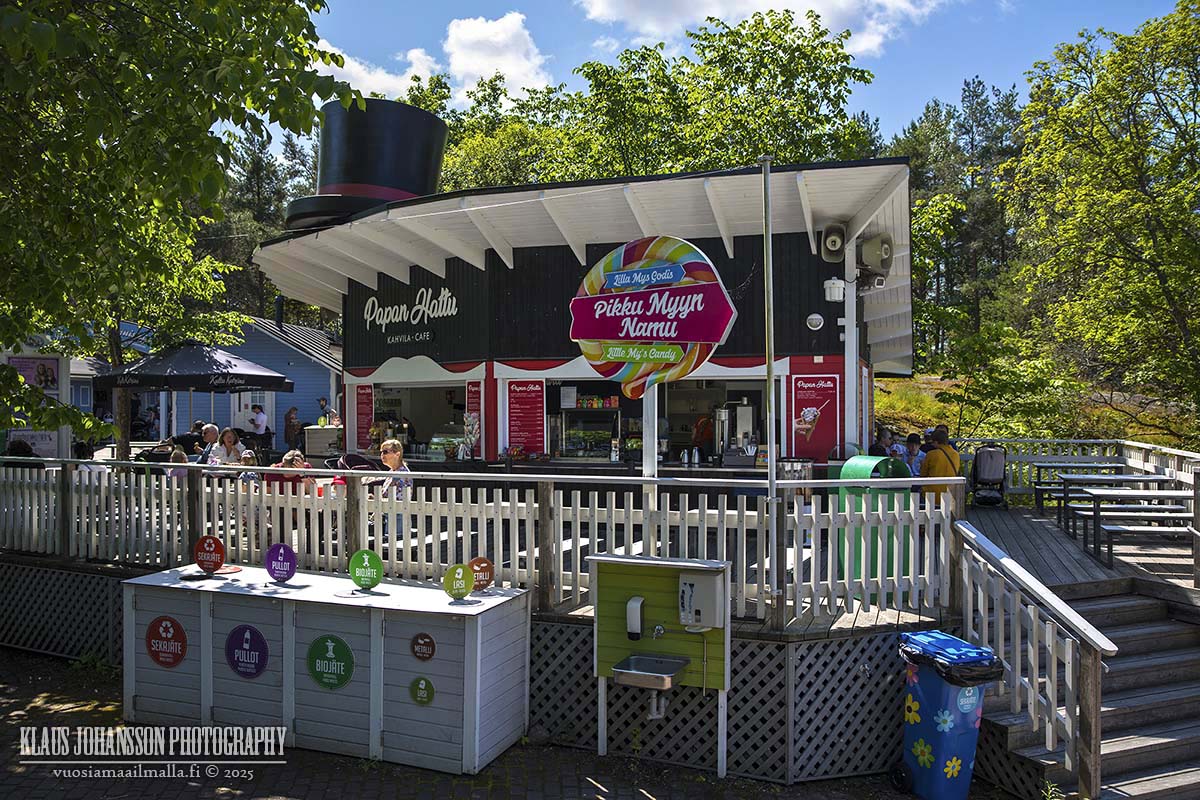 Alueella sijaitsee lukuisia kauppoja sekä ruokapaikkoja, joiden hintataso tuntui turistikohteeksi kohtuulliselta ja mielestämme saimmekin Muumimaailmassa sangen hyvää vastinetta rahoillemme.