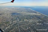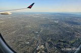 Lento Los Angelesiin meni nopeasti lapsia paimentaessa ja pian aloimmekin jo laskeutua tähän 18,3 miljoonan asukkaan megakaupunkiin. Istuimme koneen oikealla puolella, joten emme nähneet äskettäisten maastopalojen tuhoamia alueita kaupungin luoteiskulmalla. Meillä oli kuitenkin aitiopaikka ihmetellä horisonttiin levittäytyvää jättikaupunkia sen koko komeudessa ilta-auringon värjätessä maiseman.
