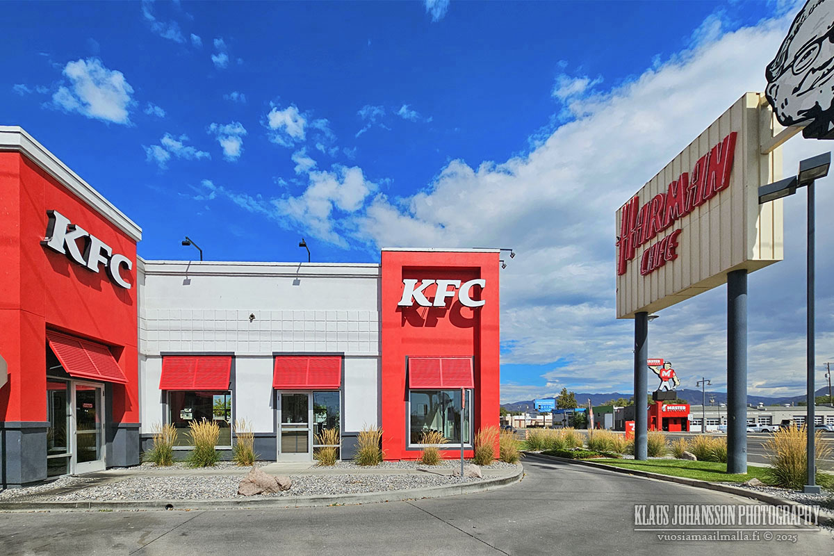 Vuokra-auton jälleen kerran noudettuani, ajoin ensi töikseni lounaalle KFC:hen. Ketjuravintolassa vierailu ei olisi normaalisti mainitsemisen arvoista, mutta osoitteessa 3890 South State Street sijaitseva KFC on tämän suuren kansainvälisen ravintolaketjun kaikkein ensimmäisen ravintola. Kyllä vain, Kentucky Fried Chickensin ensimmäinen ravintola ei sijaitse Kentuckyn osavaltiossa vaan hieman Salt Lake Cityn eteläpuolella.
