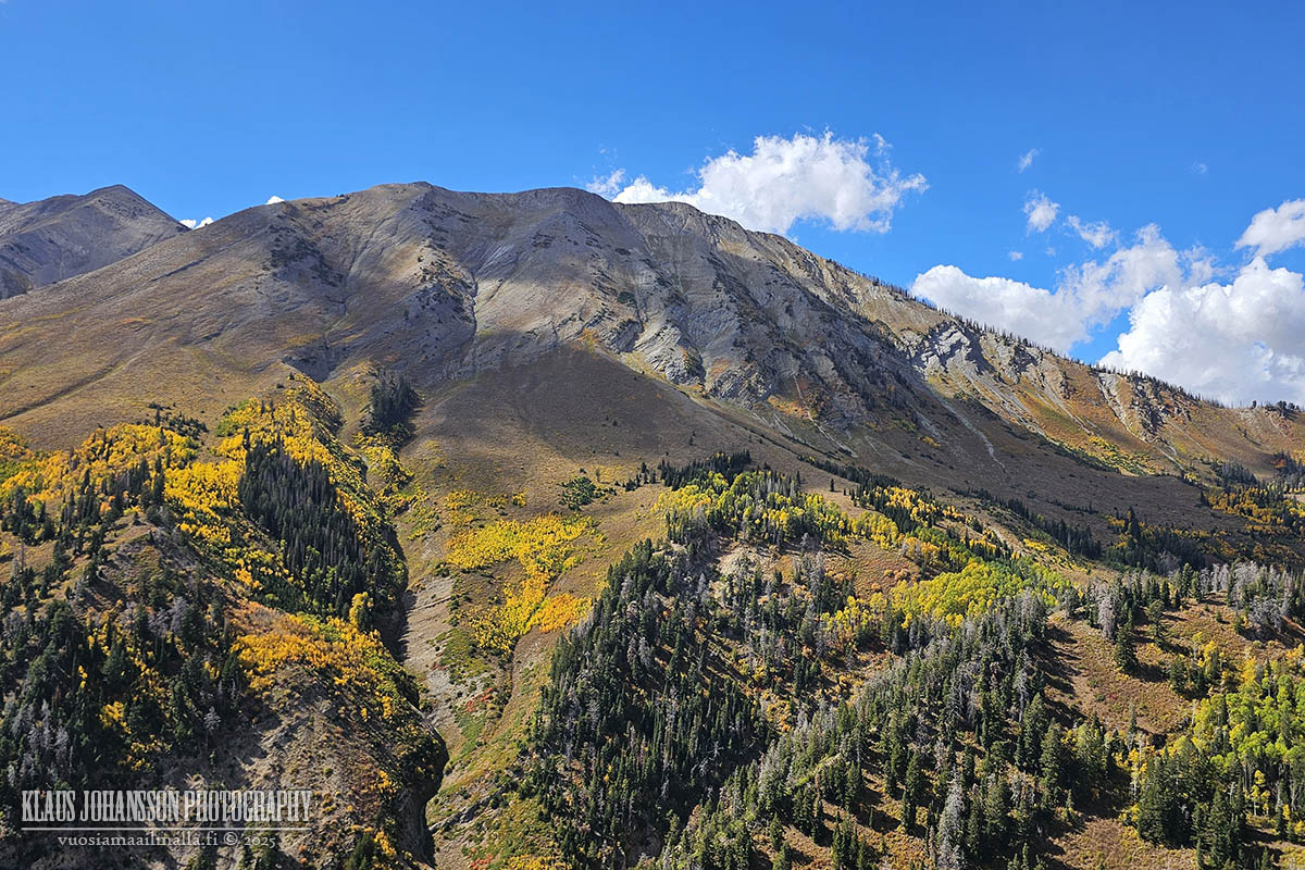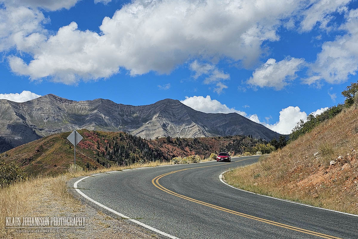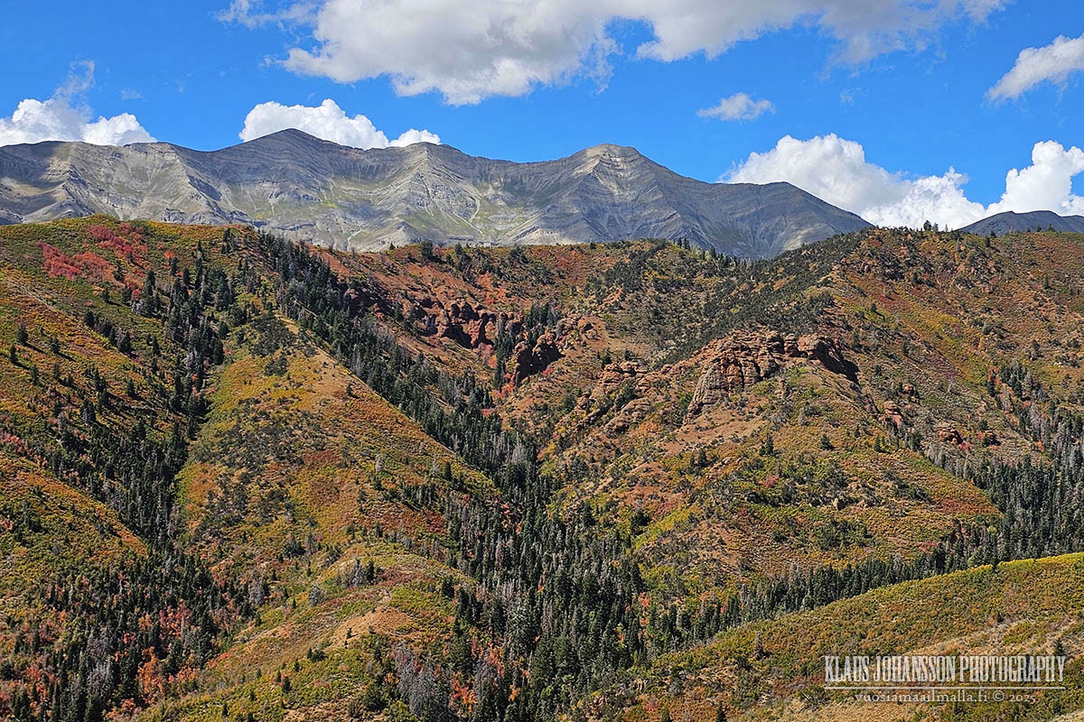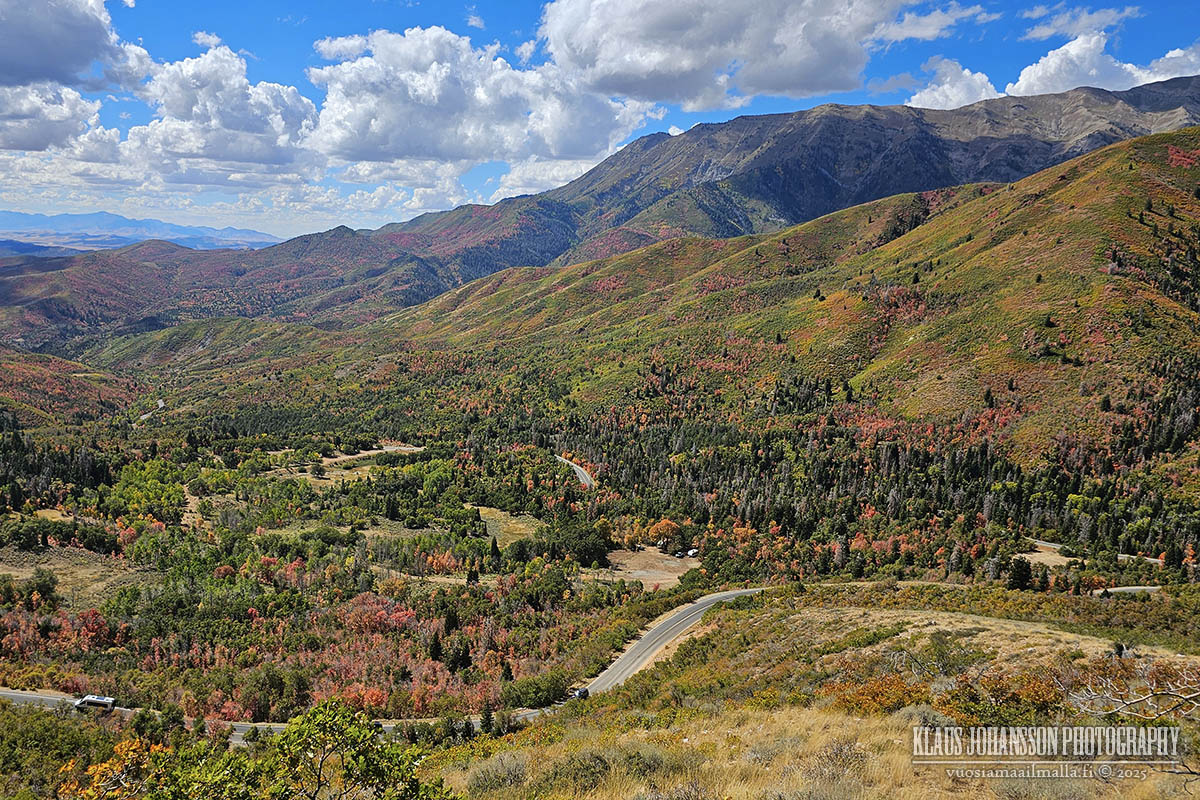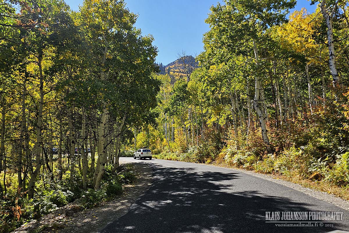 Vinkki oli erinomainen, sillä ajo Mount Nebon ympäri on todella upea, eritoten näin syksyllä. Aavikkoisen Utahin ei olettaisi olevan kovin hyvä kohde ruskamatkailulle, mutta kuten aiemmat matkani ovat todistaneet, loistavat paikalliset vuorenrinteet syksyisin keltaisessa ja punaisessa värissä maaruskan sekä alueella yleisten haapametsien lehtien muuttaessa väriään yöpakkasten saavuttua.