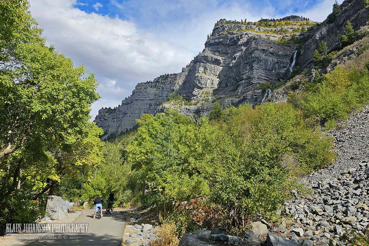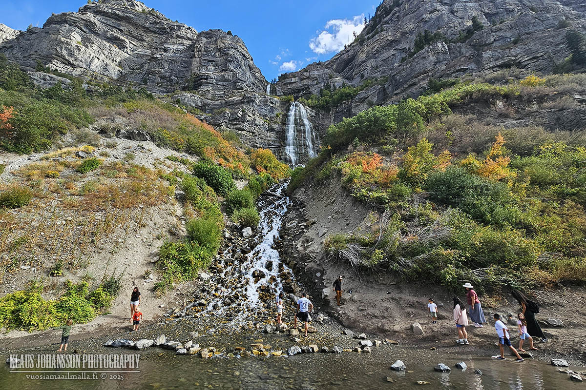Jatkoin Paysonista seuraavaksi Provoon, jonka läheisyydessä olin edellisellä reissullani missannut pysähdyksen Bridal Veil Fallsin vesiputouksella. Tämä 185 metriä korkea vesiputous sijaitsee aivan kanjonia halkovan moottoritien vieressä, mutta sen missaa helposti, jollei etukäteen tiedä pysähdyspaikkaa.